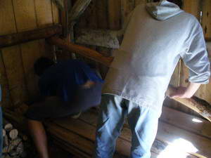Šopu ale museli predtým trošku opravovať, lebo nám začala padať. Nakoniec sa podarilo šopu opraviť, ale keďže chalani nemajú v zadkoch vrtule,