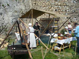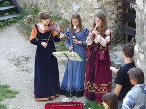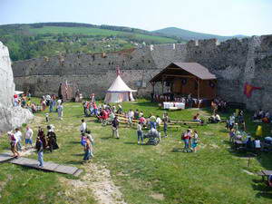 Išli sme cez Čachtice rovno do Nového Mesta a cez Zelenú vodu na hrad. V Novom Meste sme sa stihli zastaviť aj na zmrzlinu, ktorá nám v tom teplom počasí určite dobre padla. Kým sme prišli na Beckov, bolo tam už dosť ľudí, ktorí tiež využili krásnu teplú sobotu a vybrali sa s rodinkami na výlet. Celý hrad sa hemžil ľuďmi v stredovekých kostýmoch, boli tu rôzne súťaže, napríklad streľba z luku na cieľ, veľa stánkov s občerstvením.