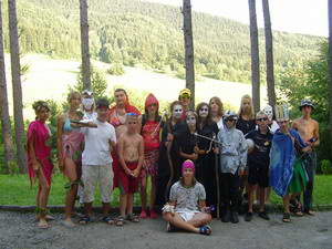 Podvečer sme mali karneval. Mali sme asi polhodinu na prípravu masky. Všetci pobehovali po chate hore - dolu a zháňali, kto im čo požičia alebo pomôže opraviť. Keďže na