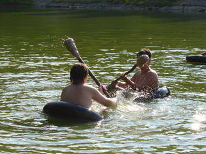 Ešte v tábore Nika so Soňou vyrobili palice na vodné bitky, ktoré mali obalené konce v starých handrách. Každá skupina si zvolila zástupcu a boje sa mohli začať. Nakoniec z nich víťazne po dlhých a namáhavých bojoch vyšiel Peťo.
