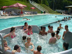 Pri prvom náznaku voľného času sme pokrstili stolný tenis a preskúmali okolie. Naša chata bola na okraji dedinky Vyhne. Bola to celkom dlhá dedina a tak nám chvíľu trvalo kým sme ju preskúmali. Všade okolo nás bol les a veľmi príjemné prostredie. Pri prvej prechádzke sme našli aj Vodný raj a tešili sme sa, kedy sa tam prvý krát pôjdeme pozrieť. Už spoza plota vyzeral vzrušujúco. Niekoľko bazénov či tobogán sme si veľmi rýchlo obľúbili a túžili sme sa tam vyčľapkať.