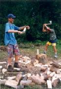sú koláče", každý sa snažil. Postupne si vyskúšali sekanie dreva do